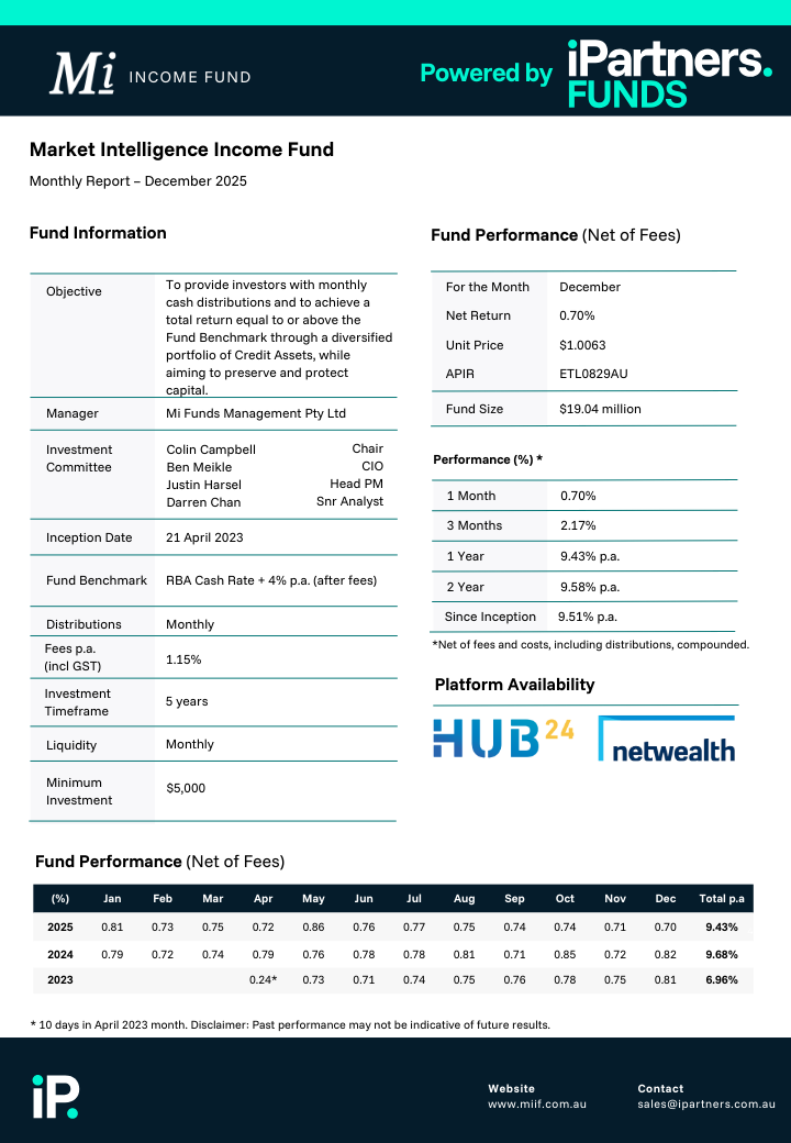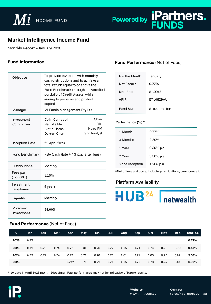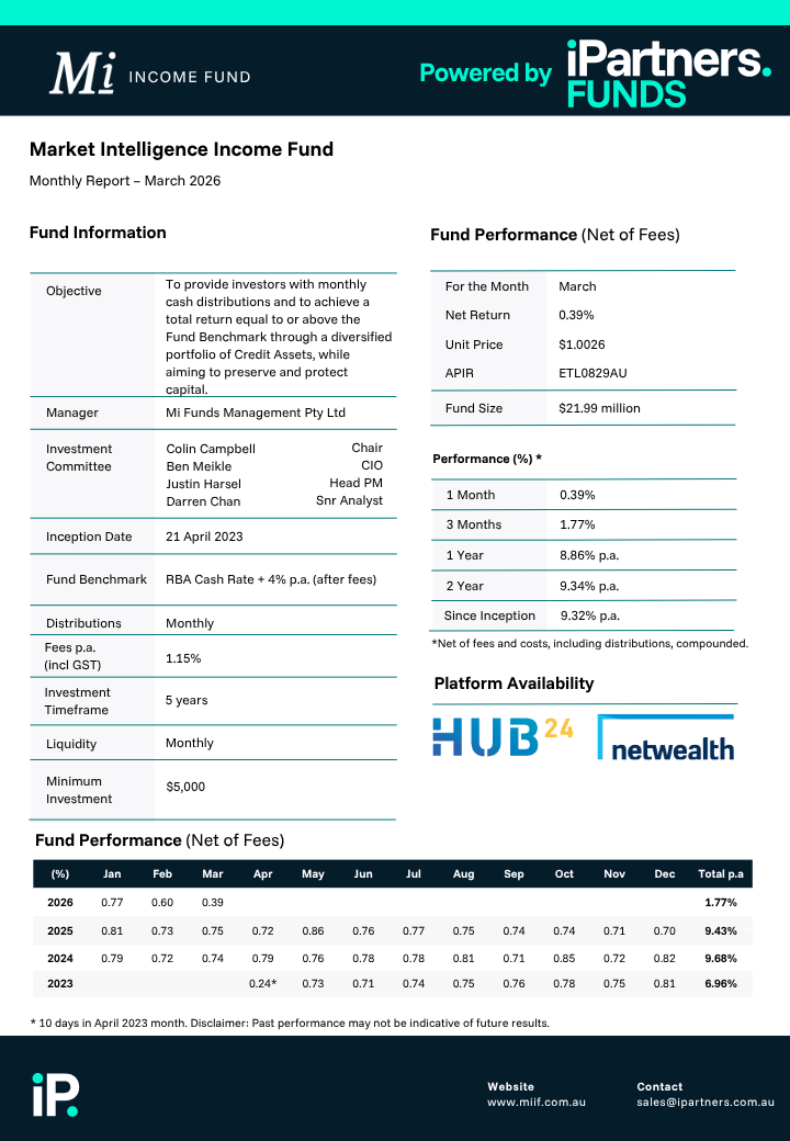 Mi Funds Management by iPartners, powered by institutional grade investments in private credit.
